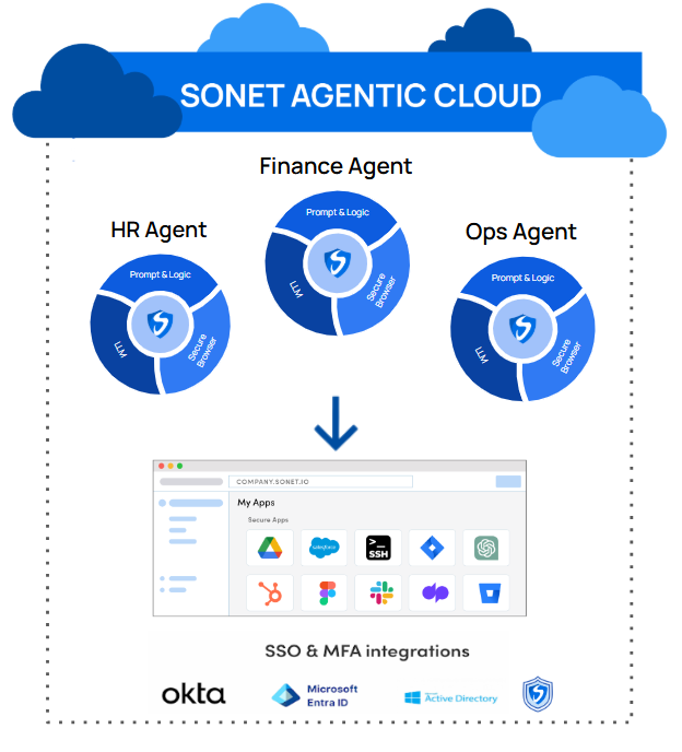 Enable vision agents to interact with enterprise apps the same way humans do, by seeing and clicking the UI, within a secure, policy‑enforced browser workspace. Apply roles-based access control (RBAC), data loss prevention (DLP), and session recording across users and agents with no VDI, no VPNs/proxies, no device deployments.
